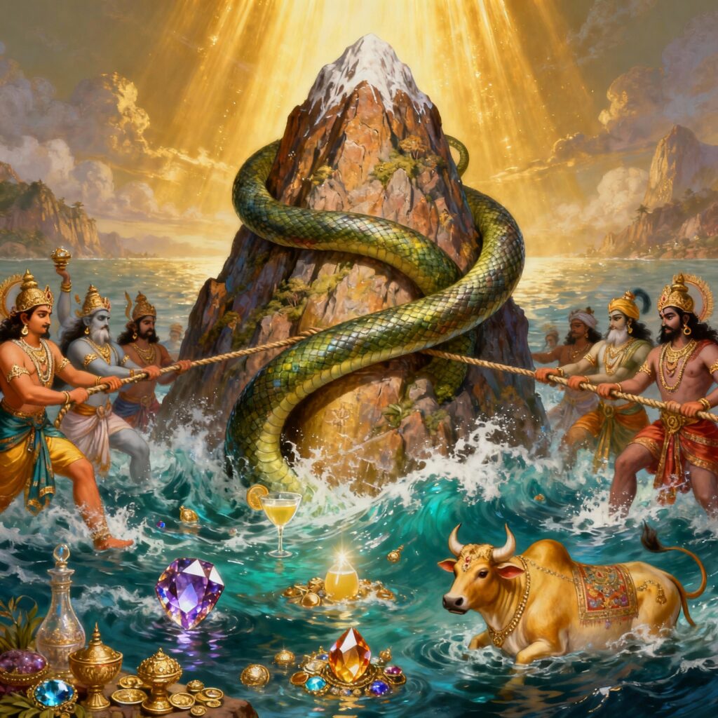 Blog·Itihasas·Puranas·Stories Samudra Manthan – The Churning of the Ocean 13 October 2025 The Need for Samudra Manthan The Asuras were at the pinnacle of their power. The strong King Bali, with his massive asura